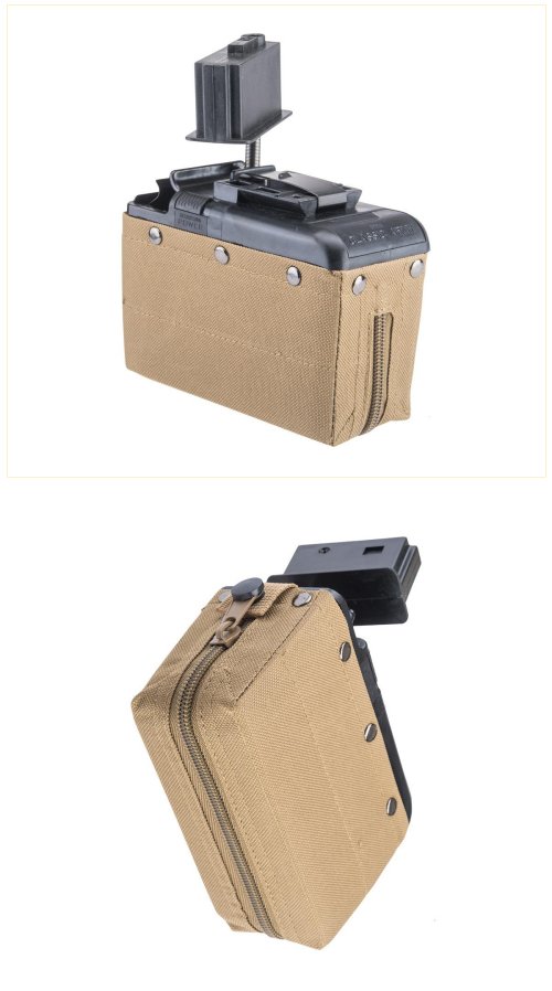 Includes feeding adapter to be compatible with A&K and other compatible M249 series machine guns