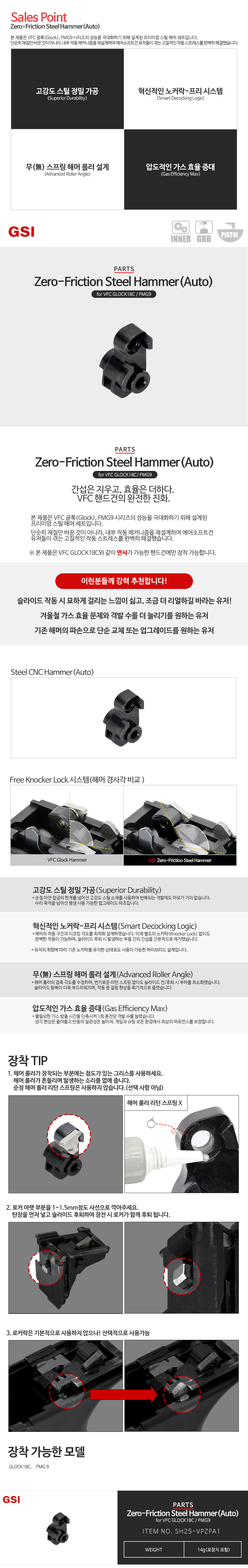 GSI Zero-Friction Steel Hammer(Auto) °£¼·°ú ¸¶ÂûÀÌ ¾ø´Â ½ºÆ¿ÇØ¸Ó Glock18C / FMG9