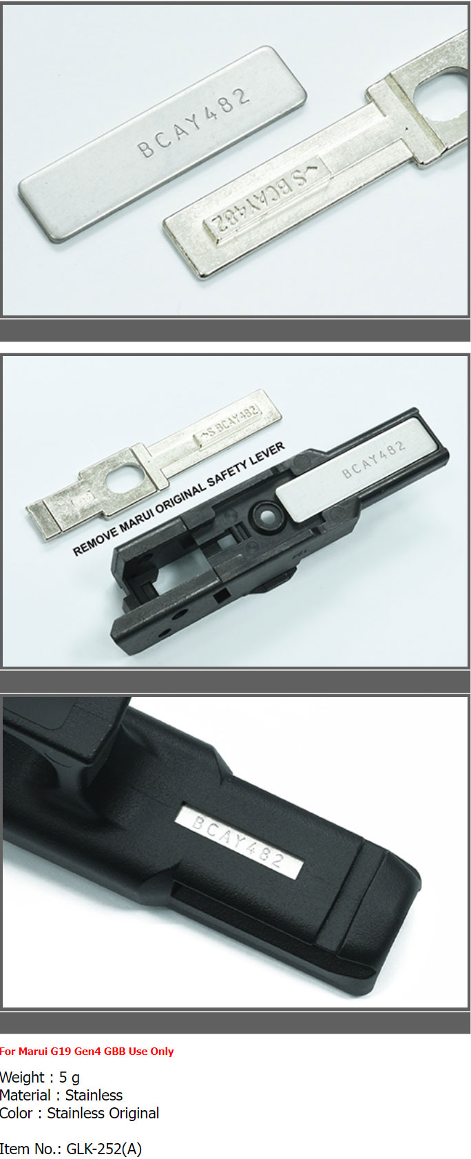°¡´õ ½ºÅ×Àη¹½º ½Ã¸®¾ó ³Ñ¹ö ÅÂ±× for MARUI G19 Gen4 (Original Number) Stainless Serial Number Tag / GLK-252(A)
