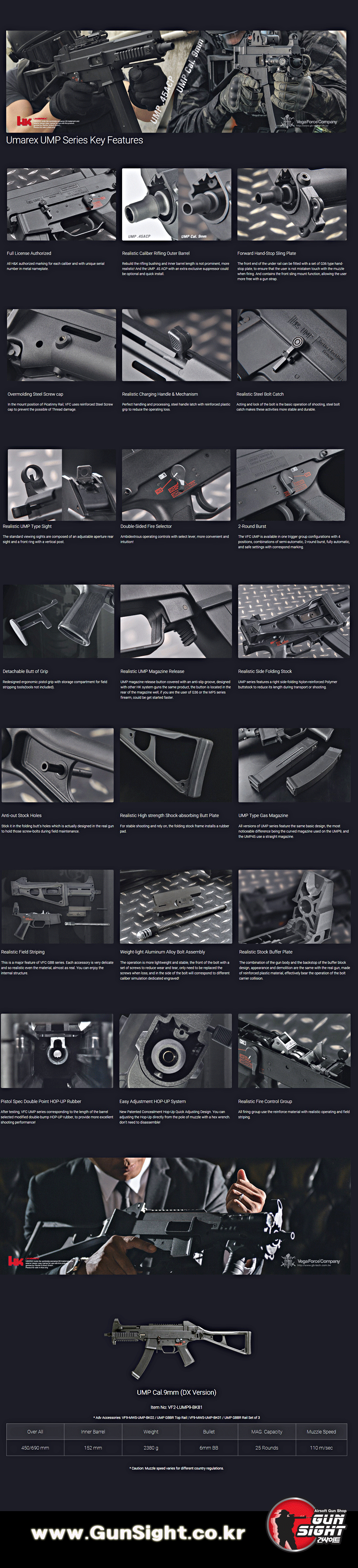 Umarex HK UMP Cal.9mm DX version °¡½º ºí·Î¿ì¹é ¼ÒÃÑ