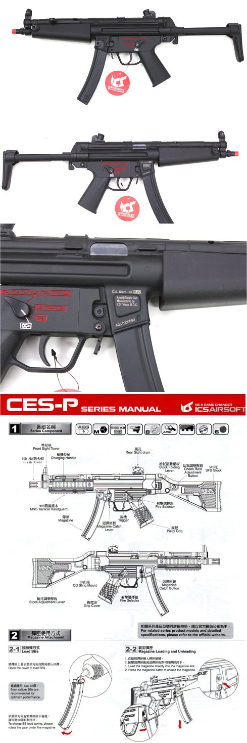 ICSÞä CES-P S3 Retractable Stock (MP5A5 Full Metal AEG)